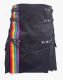 Black Gothic Kilt with Rainbow Straps is a fantastic Scottish garment that elevates your individuality stylishly and provides comfort for long-day use. This kilt is attractive due to its gothic style and rainbow color straps on the front. Black Gothic Rainbow Kilt is designed in a gothic style of the black front apron, while rainbow color straps are styled to make a unique and eye-catching look. Three nylon button straps are sewn on both sides of the front apron and connected with side O-rings. Flap pockets are designed on both sides to store your everyday items. It is an excellent choice for Family gatherings, Casual outings, and Scottish weddings. Pleats are styled on either side for easy and free movement and also give a traditional look. Our online store lets you select your favourite colors and sizes that accurately match your taste. Lobster hooks are attached with loops for hanging chains on the front side. Black Gothic Kilt with Rainbow Straps is newly fabricated with 100% pure cotton fabric, which is durable and washable. You can buy this kilt at an affordable price. So order now and buy this kilt at your doorstep.