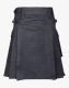 Black Active Men Denim Kilt is a versatile kilt with an exceptional design. It perfectly blends style and functionality for men seeking a kilt with modern features. It comes with a new and fashionable look that attracts viewers. It has utility features of two cargo pockets with snap buttons on the flap for storing your essentials and securing your items safely through the button. Active Men Denim Kilt comes with a simple plain apron while the traditional pleated panels are on the back and side of the kilt, giving freedom of movement on different occasions. Two leather straps with snap buttons are used for kilt fastening and adjustment. Denim loops are sewn throughout the waist to hold the belt, which can perfectly fit the waist. These loops attach D-rings for hanging keys and chains for an attractive look. All the hardware material used in this kilt is rust-free and durable.