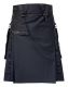Black Gothic Utility Kilt with Black Hardware is a contemporary, new-design item that enhances your appearance. It is crafted for active lifestyles and modern gothic fashion lovers. This kilt has a plain front apron, while traditional pleats are sewn on the side and back for easy and free movement. D-ring straps are sewn onto the front pleats for hanging chains, giving a modern look. Black chains are hung on the front apron, which gives a stylish look. Leather button straps are attached with fish on the right side for kilt adjustment and make an accurate fit. Detachable flap pockets are on both sides, which are attached with fishhooks. These pockets are used for carrying small items like cell phones, wallets, etc. Its bold black hardware, adjustable straps, and detachable cargo pockets give it a sleek, industrial appearance while combining functionality and attitude.