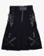 Black Gothic Utility Kilt with Leather Straps is a fashionable garment that makes you look special and attractive. It is a perfect choice for modern people who want to add a contemporary twist to their outfits to make a unique statement on their special occasions. It comes with a customization option, so you will get a kilt in your favorite color and perfect size. Black Gothic Kilt features a flat apron with pockets that are styled on the bottom of the apron. These pockets look trendy and provide enough storage for your daily used items like a Cell phone, Wallet, and Keys. These pockets have a snap closure which secures your essentials, and are also decorated with leather straps and eyelets. It has a zip closure in the middle front, which allows you to have a perfect and comfortable fit throughout the whole day. On both sides, three leather straps are sewn by which O-rings are connected, giving it a fashionable look that captures everyone’s attention towards its awesome outlook. A pleated pattern is made on the back, which allows you to move with ease. Black Gothic Utility Kilt is crafted with top-quality material. The hardware material used during its fabrication is rust-free. It is available at a reasonable price, so anyone can buy it easily. It would be a good choice to wear it at Casual outings, Formal gatherings, and Wedding ceremonies. Order now to pair it with any of your desired outfit for a classy appearance.
