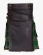 Black leather with Irish green hybrid kilt has fantastic features and a unique, innovative design that captures everyone's attention. This kilt is designed for a stylish man to look unique and fabulous with this attractive tartan pattern. We offer this kilt in all sizes, and a tartan and leather pattern of your choice, which you can select that accurately matches your taste. Black Leather Hybrid Kilt comes with a decent flat-front apron design. The tartan pleated design on either side adds a touch of tradition to its outlook and allows you to move freely for the whole day. Leather straps are styled on the right side for kilt fastening and adjustment with the help of rust-free buckles. Leather Loops are also styled on the waist area for holding and wearing the belt. Snap buttons are used on the top front waist for kilt fastening. Black Leather with Irish Green Hybrid Kilt is fabricated with the best quality pure leather fabric, which is durable and washable. This kilt is a fantastic option for wedding functions, family events, or other occasions. We offer the customise option on customer size so that it accurately fits their body. Place your order now and make your events memorable by wearing this kilt.