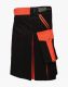 Black and Orange Utility Kilt is a modern kilt that enhances your Personality. It is designed for the stylish man to meet comfort and fashion needs. The kilt has decent features with a plain black apron, while the orange pleated design is stitched on the rear side for excellent contrast and comfortable movement. Pure leather straps with snap buttons are used on the side waist for fastening and kilt adjustment. The black and orange two-tone hybrid kilt has a two-tone cargo pocket on both sides, which gives an attractive look. You can store items like cell phones or wallets with these pockets. On the orange flap, a button is used for securing your handhold essentials. An orange cotton strap is used on the front waistband, giving kilts a unique design. Slant pockets are also used on the side of the kilt to put your hand on the pocket quickly. Belt loops are sewn on the side and back of the kilt to hold the belt and make the kilt fit