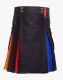 Black Rainbow Pride Hybrid Utility Kilt is a colorful addition to our collection. It is a fantastic garment designed for those who want to pay homage to their gay community. It is stylish and offers a unique and expressive look. Black Rainbow Pride Hybrid Kilt has a plain front apron, while the back has rainbow pleats. The front waistline has button snaps to ensure a secure and comfortable fit. It features rainbow-colored cargo pockets on either side, allowing you to store your daily used items like Cell phones, wallets, and Keys. It has belt loops of multi-rainbow colors, and D-rings connect them to add more functionality. Black Rainbow Pride Kilt is crafted with 100 % pure Cotton material, ensuring its durability and comfort. It is suitable to wear at Special events like Weddings, Formal gatherings, or while having fun with your friends. Our main motive is to deliver a handmade kilt according to your requirements. Order a kilt at a fair price in your desired size now.