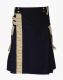 Black Utility Kilt with Khaki Straps is a fashionable garment that adds a modern twist to your outfits with its attractive hardware style. We offer this amazing kilt in various color options, so you can purchase a kilt in your favorite color combination. Black Utility Kilt features a flat apron that is decorated with a khaki strap and rivets that make the kilt more attractive. It has snap closures on the front waistline, providing a perfect fit for the wearers. It comes with khaki buckle straps below the waistline that offers a comfortable adjustment. Large flap pockets are styled on either side of a kilt that is also decorated with rivets and provide extra storage for your everyday essentials like a Cell phone, Wallet, and Keys. A pleated pattern is made around the back that highlights your love for Scottish culture and also helps in movement during your tough adventures. Black Kilt with Khaki Straps is crafted with exceptional quality Cotton. All the hardware material used during its fabrication is rust-free and will last for years to come. You can wear this kilt at your wedding events, casual outings, and family gatherings. Order now to get this kilt at a reasonable price in your size.