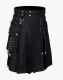 Black Utility Kilt with Laces Style has a new style and functional garment that gives a modern and attractive look to your personality and wardrobe more beautifully. It features a unique design that is stylish and modern as well. This kilt comes with the functionality of detachable pockets on both sides, which makes an attractive impression on the viewers. Pockets are decorated with laces, and buttons are used to secure handheld items safely. Black Utility Kilt has an attractive front apron with a lace style, which looks classy. Pleated patterns are stitched on either side for a charming and traditional look. Snap buttons are used on the top front waist for kilt fastening. Belt loops are styled with eyelets on the waist area to wear a belt and make the waist a perfect fit. Black Utility Kilt with laces style is fabricated with exceptional quality drill jeans and cotton fabric with rust-free hardware material. It is handmade, and we always deliver top-quality products at an excellent price that satisfies the customers' needs. Whether planning to go to a Casual party or a Wedding event, this kilt makes you look unique and attractive. Order it now to get this fashionable kilt and make your events more memorable