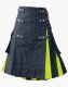 Black with Fluorescent Green Gothic Hybrid Kilt is a versatile and modern garment with stunning fashion and eye-catching effects that captivate everyone’s attention. It has hardware styling on its front, which makes it fabulous and perfect for various occasions. It comes in a customization option, so you can purchase it in your favourite colors and sizes that perfectly match your personality. Black and Fluorescent Green Hybrid Kilt is designed with an attractive flat front apron. Nylon straps are styled with rivet buttons and attached to the centre O-ring. Three nylon button straps are made on both sides and connected with O-rings to hold the apron in its exact place, giving it a completely gothic look. It has a lobster clasp on either side of a kilt, which allows you to hang chains. Flap pockets are styled on either side of a kilt, providing enough storage for everyday essentials like a Cell phone, Wallet, and Keys. Fluorescent green pleats are styled on the other side, offering freedom of movement for the whole day. Black with Fluorescent Green Gothic Hybrid Kilt is newly manufactured with top-quality cotton fabric and rust-free hardware material. We offer this kilt at an affordable price in your desired size. It is suitable to wear at Irish and Scottish weddings, Formal meetings, and Casual outings. Order it now