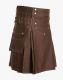 Brown Utility Kilt with Studded Apron is a versatile choice for those looking for a stylish look and functional features. It makes your look more attractive due to its innovative design. It is handmade, and we offer it in various colors for your convenience in selecting the one you want to pair with your outfit. Brown Utility Kilt with Studded Apron has a flat apron styled with studs to make its appearance modern. Snap buttons on the front waistline provide a secure fit for the wearers. It comes with large pockets on both sides with flaps and offers enough storage for your personal belongings like Cell phones, wallets, and Keys. Two buckle straps are made above the pocket at the kilt’s one side for a perfect adjustment. It features a traditional pleated pattern that helps you move easily while performing tough activities like games. Brown Kilt with Studded Apron is crafted with 100 % pure Cotton material. It is accessible in your size at a reasonable price. Whether you are attending a Scottish Wedding event or a Casual party, this kilt makes you unique from other people. Order now to add a Scottish flair to your wardrobe.
