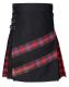 Cargo Black and Macpherson Tartan Hybrid Kilt is a traditional and modern garment with fantastic features that give it an impressive look. It will be the best option for those who want to stand out in the crowd. Macpherson Tartan Hybrid Kilt comes with a simple and decent plain front apron, while pleated panels are sewn on either side for free movement and a classy look. A pair of tartan straps sewn on the front apron gives an eye-catching look to the viewers. Snap buttons are used on the top front waist for kilt fastening and make an accurate fit. Loops are designed with eyelets and a D-ring for hanging small items and wearing a belt, which looks more eye-catching. Nickel hooks are attached with the right corner and attached with side d-rings. Black and Macpherson Tartan Hybrid Kilt is newly manufactured with 100 % pure leather fabric, which makes it durable. It is accessible in the sizes and colours you demand at an affordable price. Wearing it at Wedding functions, Casual parties, and Traditional events would be an excellent option. Order now to get the best quality kilt at your doorstep in time.