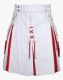 Christmas White and Red Fashion Hybrid Kilt is a fashionable garment that would be a perfect choice for those who want to make their Christmas events more memorable. We offer this kilt in various sizes and color combinations, so you will get a kilt according to your preferences. This kilt is attractive and eye-catching due to its red laces styled on the front, back, pockets, and both sides. These laces also make a great color contrast with white. White and Red Hybrid Kilt is designed with a classy front apron that looks decent. A red pleated pattern is made on the side and back, giving you a traditional style and providing ease of mobility for the whole day. Detachable pockets are styled on both sides, allowing you to carry valuable items like a Cell phone, Wallet, and Keys. Belt loops are sewn on the waist area, and a D-ring is attached to each for hanging lightweight items like chains and keys. Christmas White and Red Hybrid Kilt is crafted with 100 % pure drill jeans cotton fabric. You can wear it for Casual outings, Irish and Scottish weddings, Christmas Parties, and parades. Order it now to get this fantastic Christmas kilt at an affordable price.