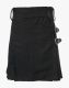 Female Black Utility Kilt comes with functional features that adds a royal touch and unique design to your outfits. It is fashionable and elevates your dress with its fantastic design. It showcases your personality and allows you to modernly express your love for Scottish traditions. Womens Black Kilt comes with a simple and decent plain front apron. It has pleats on either side for freedom of movement and gives a traditional touch. Two flap pockets are styled on the backside of the kilt, providing enough storage for your everyday essentials like a Cell phone, Wallet, Keys, etc. Classic buckle straps on the left sides fasten and adjust the kilt through silver buckles. Loops are used on the waist area for holding and wearing the belt, making the waist an accurate fit. Female Black Utility Kilt is fabricated with pure drill jeans cotton fabric. Best quality material ensures its comfort and longevity. It is available in various sizes at an affordable price. You can wear it on casual outings, formal and family gatherings, and parties. Order now to get a kilt on your doorstep with handmade features.
