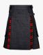 Hybrid Denim Kilt Red has an attractive design combining style and fashion. Its unique features give you a premium look that is perfect for your wardrobe. The use of denim makes you comfortable for the whole day. The kilt has the unique characteristics of a cotton loop and is used for holding the belt on the waist. With these loops, a D-ring is also attached for a stylish look. You can also hang the chains and keys with these D-rings. Wallace Tartan Hybrid Kilt has a decent plain apron from the front side, and on the rear side, pleats are stitched for easy movement. The front side of the kilt is made of denim fabric, while the pleated design is made with Wallace tartan fabric, which shows some traditional style. The kilt has denim pockets on both sides for storing essentials. Flap pockets have brass buttons for securing your items. Two pure leather straps with snap buttons are used on both sides to adjust and fasten the kilt.