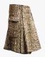 Leopard Utility Tactical Kilt is a new design garment that would be perfect for your wardrobe and more attractively match your personality. It comes with an amazing fabric print, which is the same as the leopard's body color. This unique printed fabric is an ideal choice for fashion enthusiasts all around the world. It is handmade, and we always deliver new products that satisfy the customer's needs. Leopard Tactical Kilt has a simple and decent plain front apron that gives it a decent look. Its buttons on both corners of the front apron make it unique and add elegance to its overall design. A traditional pleated pattern is designed on the side, and back that helps with easy movement and also shows your resemblance to the Highlander culture. It has large flap pockets that provide ample storage for your everyday essentials like a Cell phone, Wallet, and Keys. Flap buttons are used to place your items in your pockets safely. Fastening buttons are also used on the top front waist for kilt closure. Loops are also designed on the top waist for holding and wearing belts. Leopard Utility Tactical Kilt is fabricated with 100 % pure drill jeans cotton fabric. It is an ideal choice to wear for a variety of occasions like traditional festivals, formal gatherings, or a Highland gaming event and other outdoor activities. You can buy it in your favorite colors and sizes, as we offer it at an affordable price. Order it now.