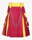 Maroon and Yellow Hybrid Kilt with Chains is a fabulous garment that offers a contemporary design with functional elements. It looks attractive and functional due to the addition of chains that add more elegance to its appearance. It comes in various color combinations, so you can make a perfect match with any of your desired attire. Maroon and Yellow Hybrid Kilt features a flat apron that falls perfectly downwards. It has snap closures on the front waistline, offering a perfect and secure fit throughout the whole day. It comes with belt loops, and D-rings are connected to each, allowing you to attach lightweight items like keys and chains. Chains are decorated on the front and back with the help of D-rings, making the kilt more attractive and fashionable. It has stylish pockets on both sides, providing enough storage for your everyday essentials like a Cell phone, Wallet, and Keys. A pleated pattern is made around the back that offers ease of mobility during your tough adventures and also adds a classic twist to its contemporary design. Maroon and Yellow Two-Tone Kilt is fabricated with top-quality Cotton, making it durable and also assuring its longevity. It is suitable to wear on a variety of occasions, whether you are planning to go to a casual party or a formal meeting, and this kilt will make you distinctive from others. It is also a perfect choice for Outings and Family gatherings. Order now as we offer it at a reasonable price to make it accessible for everyone.