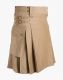 Men Khaki Utility Kilt is a new style with functional features. This kit is specially designed for those who want a modern look that makes their personality more attractive. It features a unique design that is stylish and modern as well. Khaki Utility Kilt has a simple and decent plain front apron with button closure on the top-front waist for kilt fastening. Pleated panels are stitched on either side, which provides easy movement for the whole day and gives a traditional look. Belt loops are designed on the waist area to wear a belt and make the waist a perfect fit. This kilt comes with the utility features of large pockets on both sides, which allows you to store your essentials safely with the help of snap buttons. Khaki buckle straps are styled with eyelets on the right side for kilt adjustment. Men Khaki Utility Kilt is fabricated with top-quality Cotton fabric that is durable and washable. Whether you're going to a Casual party or a Wedding event, this kilt will make you look unique and attractive. We offer this kilt in various sizes and colors at an affordable price, so order it now.