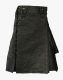 Men's Black Denim Kilt in Laces Style features an innovative and attractive design that attains everyone's attention at any casual and formal event. It is attractive due to its hardware style, which makes it an ideal choice for outdoor outings, Parties, and Formal occasions. This kilt has a simple black plain front apron, while the traditional pleats are sewn on either side for freedom of movement. It has a unique functionality of Black lace style on the front right border that creates a unique and vibrant look to the kilt. Buckle strap and laces style are used to close the front apron accurately. Men's Black Denim Kilt has utility pockets on both sides. These pockets give enough space to store your essentials safely with the help of flap buttons. Two pockets are on the back side for some functionality. Silver chains are hung on the side of the kilt for a stylish look. V-shaped loops are styled throughout the waist to wear a belt. Men's Black Denim Kilt in Laces Style is uniquely manufactured with pure drill jeans denim fabric with quality material. We offer this kilt in various color options, so you can select the one that you want to go with that specific color. So order now and get this kilt at a discounted price.