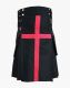 Men's Black Utility Kilt With Red Cross is a fabulous and traditional garment that elevates your personality in a modern way. It is perfect for those who want a contemporary design with functional features. This kilt has an attractive front apron with a red cross sign, which makes a great color combination with the kilt. Traditional black pleated designs are stitched on the side and back of the kilt for free movement. Men's Black Utility Kilt With Red Cross has the functional features of two small chains on the back side for a stylish and eye-catching look. Large cargo pockets are on both sides for household essentials like cell phones, wallets, etc. Snap buttons are styled on the front waist for easy kilt closure. A lobster clasp is attached on the right side for kilt adjustment up to 1-2 inches. Men's Black Cross Utility Kilt is fabricated with excellent quality Cotton fabric. We offer this kilt at a reasonable price in various sizes and colors. It is handmade and comes in a fine stitching. Whether you are attending a Scottish Wedding event or a Casual party, this kilt is an excellent choice. So place your Order Now.