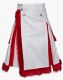 Mens Christmas Hybrid Kilt helps people embrace the festival in a traditional style. It is a must-have addition to the festive wardrobe. This kilt is perfect for holiday parties, Christmas events, or as a standout outfit for any Christmas celebration. Primary color of this kilt is red. Combination of a red apron with tartan pleats and white fur makes it a true reflection of the event. This festive clothing is made with high-quality fabric (cotton and acrylic wool) making them long lasting. Mens Christmas Hybrid Kilt have some extra features, like fur on the pleats and side of the apron and its lower part. Having cargo pockets on both sides aims to help wearers to carry essentials. For increased safety, buttoned flaps are added to pockets. The waistband is decorated with fastening buttons for a secure fit and V-shaped belt loops, making them more appealing. The belt loops have rust free D-rings to make the kilts more catchy. Moreover, the Christmas kilt has back pleats as traditional parts and flexible movements. The pleats are made with tartan to make the kilts traditional. In addition, these kilts are available in different colors and tartan patterns. Most importantly, these kilts are available at lower prices with quick delivery.