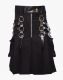 Modern Black Utility Kilt with Leather Straps is a modern piece of Scottish attire that offers a unique style that captures everyone’s attention towards its trendy outlook. It is handmade and we offer it in various colors and sizes at an affordable price. Black Utility Kilt features an amazing design that makes it distinctive and fashionable. It has a pleated pattern all around the kilt, giving it a unique style that would be a perfect choice to make a fashion statement at any event. It comes with a zip closure on the front and a button as well that provides a comfortable and secure fit throughout the whole day's wear. It has three leather straps that are also connected with D-rings on the front, adding elegance to its whole design. It has flap pockets on either side of a kilt that is decorated with leather straps and rivets, offering enough storage for your everyday essentials like a Cell phone, Wallet, and Keys. Modern Black Utility Kilt with Leather Straps is crafted with exceptional quality Cotton, ensuring its durability and longevity. It is suitable to wear at Casual outings, Scottish and Irish weddings, Formal meetings, and Special parties. Order now to add a modern twist to your outfits.