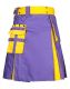 Purple and Yellow Hybrid Utility Kilt with front Pockets is designed for those who love to stand out. This eye-catching kilt features a powerful contrast of deep purple and bright yellow, giving it a vibrant and edgy look. It’s more than just a fashion piece; it's a functional garment made with comfort and utility in mind.