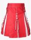 Red and White Two Tone Hybrid Kilt is a custom handmade and functional garment that adds a unique twist to your outfits and personality. It is handmade, and we offer it in various colours so you can choose from a combination. We offer it reasonably priced to make it accessible for every budget. This kilt is attractive and modern due to its red and white color combinations. Red and White Hybrid Kilt is designed with fantastic features of red and white laces design styled on the front, back, side, and pockets. A white pleated pattern is made around the back and side, showing your resemblance with the Highlander culture and helping ease movement during your activities. Detachable white, red, and white pockets are styled on both sides to give it a unique style. These pockets allow you to carry valuable items like a Cell phone, Wallet, and Keys while giving you easy access. Belt loops with eyelets on the waist to wear a belt and hanging sporrans. Fastening snap buttons are used on the top front waist for kilt fastening and to make an accurate fit. Red and White Two Tone Hybrid Kilt is crafted with 100% quality Cotton fabric, which ensures its durability and longevity. We always deliver handmade new products with fine stitching. It is suitable to wear on Casual outings, Christmas functions, New Year events, and Special parties. Order it now.