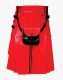 Red Leather Kilt with Black Front Pocket is a perfect choice to complement your dress that also expresses your unique personality in a stylish way. It also shows off the modern style with a classic design that makes your look more attractive. We offer this kilt in a customised option so that every person can select their own fabric colour and size. Red Leather Kilt comes with fine stitching with a simple flat plain front apron. It has a pleated design on the rear side, adds a traditional touch and helps with easy movement for the whole day. It comes with leather straps on both sides that provide wearers with a perfect and comfortable adjustment through plastic buckles. It has large pockets on either side which help you to store your everyday essentials like a Cell phone, Wallet and keys while travelling or attending an event. Fastening buttons are also used in the top front waist for kilt fastening. Black and red detachable pocket on the front apron carrying light weight items. Red Leather Kilt with Black Front Pocket is crafted with original red and black leather fabric with rust-free hardware material of good quality. You can wear it at Scottish Weddings, Casual outings, and Formal gatherings. It makes you unique from others due to its classy and luxurious look.Order this kilt now at an affordable price.