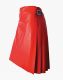 Red Leather Kilt is an exceptional versatile garment and the perfect addition to a stylish wardrobe. It is designed for a modern man to personalize their distinctive style. It is eye-catching and leaves a lasting impression at any event. This kilt design is available in various colors, so you can pick the one that suits your personality. Red Leather Kilt is sewn in a simple style, having a flat apron. It has an adjustable leather strap on both sides of the waistline, providing a perfect fit for the wearers. A traditional pleated pattern on the back shows its attachments with the Highlander style. It also makes your movement easy while performing tough activities like Hiking, Games, and many others.