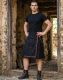 Standard Black Utility Kilt with Chains comes with a distinctive style and appearance. On its front, it has snap buttons to fasten the kilt properly. The front apron of the kilt is flat and shows stripes styling. The black stripes are connected with an O-ring, while the red strip across its left and bottom edges gives this kilt a fabulous look. It is also functional; the D-rings connect each belt loop to attach lightweight items. It features flap pockets on both sides of the kilt and is styled with stripes and D-rings. These pockets provide extra storage for your belongings while on the go. On its back, it has a pleated pattern, while the addition of stripes styling makes this unique and fashionable. It also comes with silver chains. A silver chain is connected with D-rings on both sides of the kilt. The other is attached with the pockets D-ring to the back of the strips with a tiny O-ring. Standard Black Utility Kilt with chains is made with pure quality Cotton. It ensures the kilt’s durability and longevity. The hardware material used during its manufacturing is free of rust and long-lasting. You can purchase this fantastic kilt in various colors with the additional customization option as it is available at a discounted price, so you can avail this opportunity to include this tremendous kilt in your wardrobe. It is perfect for Fancy events, Casual gatherings, and Special parties. Order Now.