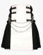 White And Black Gothic Hybrid Kilt has a stunning statement in the fashion world and dark gothic kilt features. The white and black color scheme represents light, and dark and makes an elegant design. The front apron of the kilt is white and detachable which is decorated with six leather straps with snap buttons used on the front side to attach the apron. Gothic Kilt has O-ring features adorned on both sides and attached with pure leather straps that run on the back for adjustment. Belt loops are on the back and side waist to wear and hold the belt easily and make the waist a perfect fit. White And Black Hybrid Kilt comes with stylish chains on the front apron that look stunning and stylish. Rust-free hardware material is used in this kilt if you want to wear a great color combination kilt on your favorite events, wedding functions, or casual and formal occasions. Our professional craftsmen use 100% drill jeans cotton material to make this gothic kilt. This kilt is available at a reasonable price in your demanding size. So get your order now.